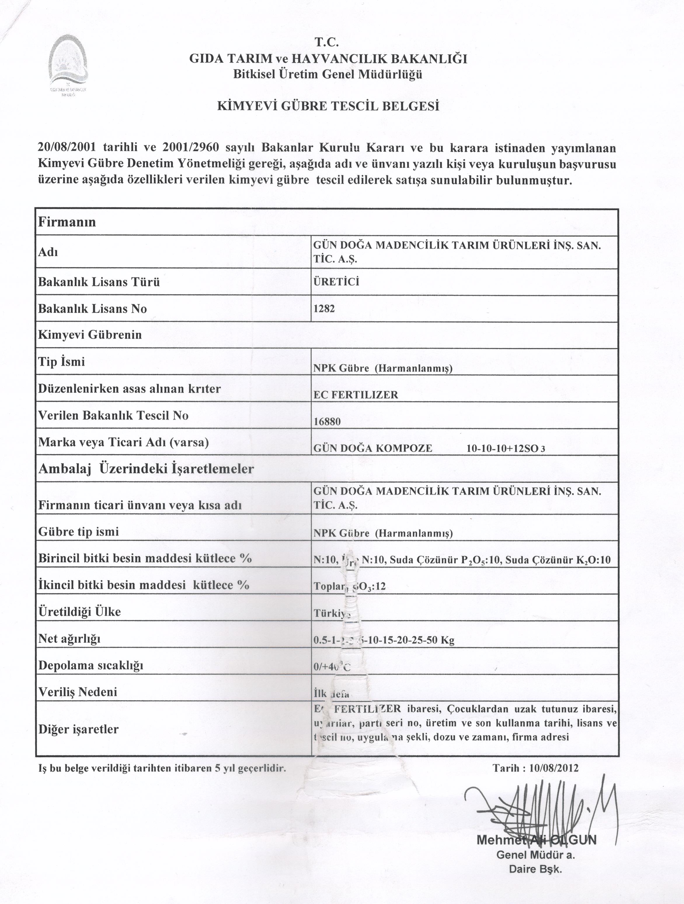 NPK +10 SO3. Özellikle üç ana besin maddesince (azot, fosfor ve potasyum) fakir olan topraklarda dengeli gübreleme için önerdiğimiz bir ürünümüzdür. Bünyesinde azot, fosfor ve potasyuma ilave olarak son yıllarda tüm dünyanın kabul ettiği dördüncü bir besin elementi olan kükürt (S) bulunur. Kükürt, bitkiler tarafından alınabilir formdadır.